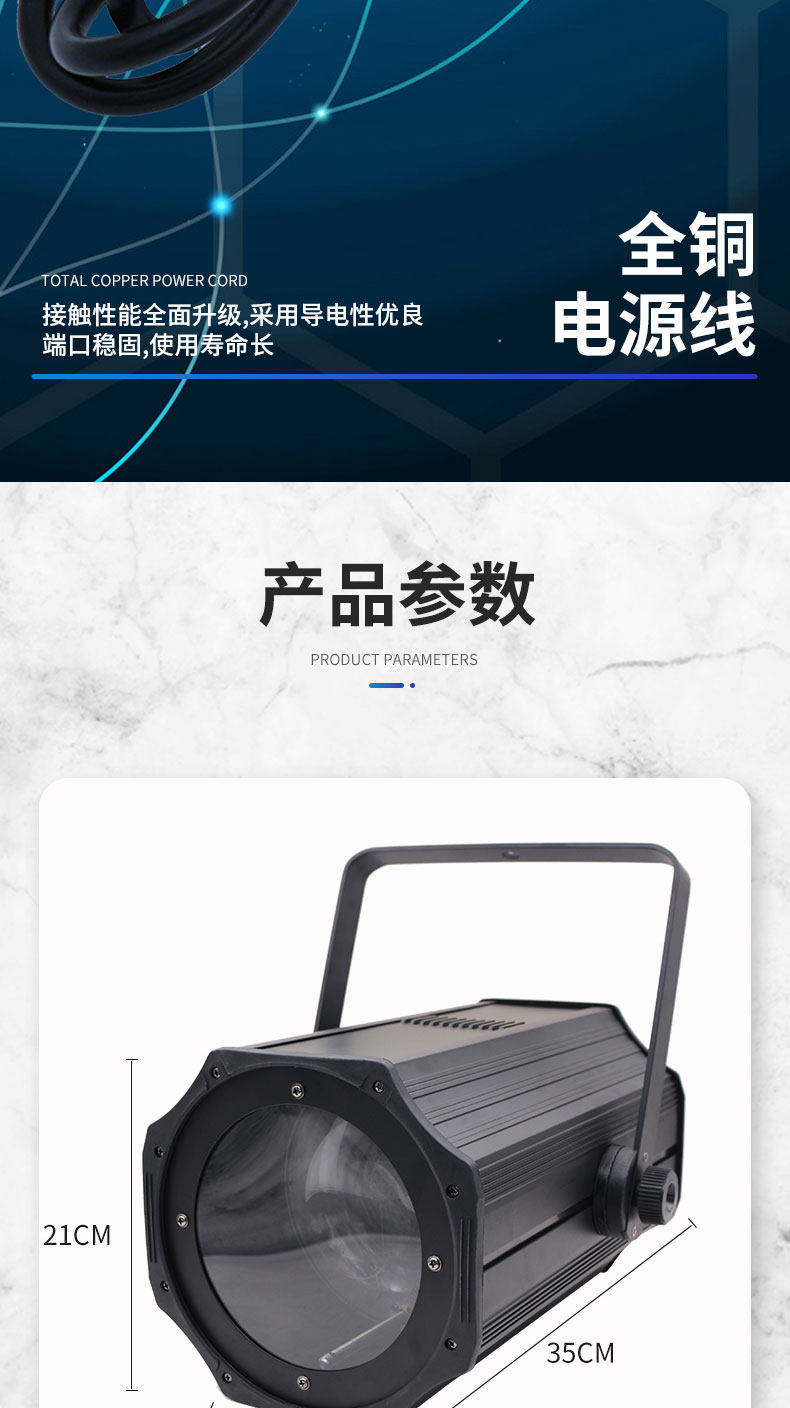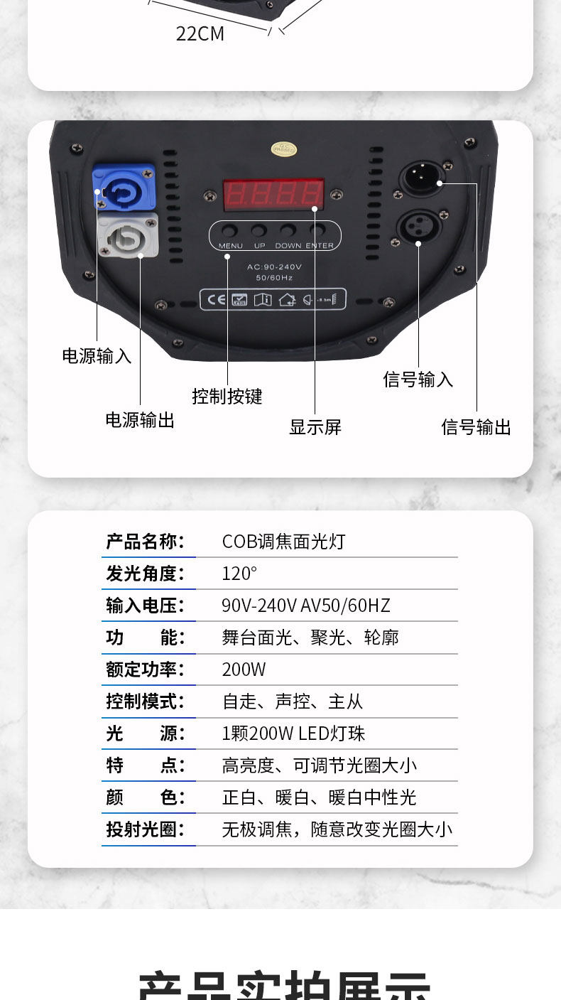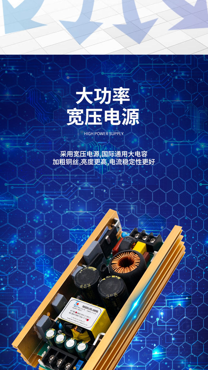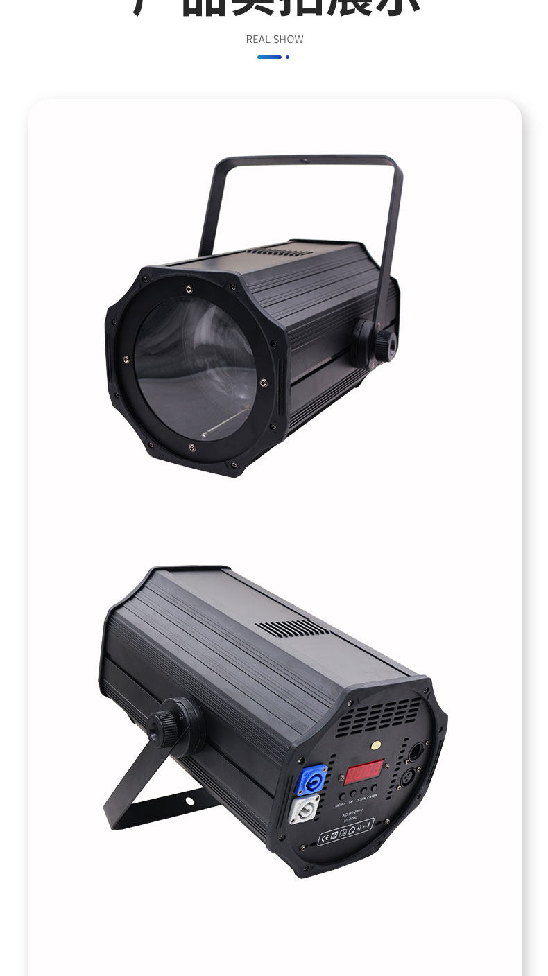 B300Z? VW采用暖白LED光源,高顯色指數,超高的亮度,節能環保,可替代傳統2000WPAR燈。小巧精致輕便、雙吊架設計,多個出光角度可電動調節切換,0~****順滑調光,多種速度頻閃效果。適用于更廣范圍的應用場所。采用300W集成COB燈珠,結合訂制組合光學透鏡,并配備電子調焦功能,調光角度可在15-60度之間調節,光衰慢,壽命長,無閃爍,超靜音,溫度低,重量輕,照度高,光線漸變均勻、聚散自然,特別適合大型演出之遠距離投射。輸入電壓:AC110-240V/50-60HZ額定功率:350W光源類型:300W集成LED模組使用壽命:6-10萬小時色溫校正:3200K-5600K線性調節光束角度:順滑安靜電動調焦,調焦范圍為 8°- 60°光 通 量:5米 4200Lux,10米1100Lux顯色指數:CRI≥97通道模式:3/6雙通道切換電源品質:采用高技術恒流電源板,所有PCB板元件均選用國內外**品牌, AC電壓模式,輸出電壓穩定、工作壽命長,抗干擾能力強。調光系統:0-****獨立電子線性調光,高達65535位級別的曲線調光模式,讓調光過程中,無閃爍、抖動,跳變,調光換色更柔和,攝像更清晰真實。高速頻閃:獨立電子頻閃,1—25hz 隨機頻閃,脈沖頻閃,同步異步頻閃控制模式:聲控、程序自走、主從、DMX512控制光學系統:高亮度菲涅爾透鏡設計,具有聚光性強,色溫鮮艷,防止漏光,使燈光效果更均勻,打造出更絢麗的舞臺燈光效果,給您**的視覺體驗顯示 : 液晶屏顯示功能,點陣式按鍵操作,界面操作更快捷方便。信號連接:長1米手拉手式信號線輸入/輸出電源連接:1米手拉手式三芯電源線輸入/輸出工作環境:IP20/室內使用工作溫度: -20°C~40°C風扇散熱:采用進口高品質、高低轉速兼顧的熱敏靜音風扇;使得燈體熱量及時排出,保證燈具,始終保持在預定的溫度范圍。散熱保護:內置過熱保護,風扇自動跟蹤溫度,智能調整,使燈具各部件保持在較低的溫度環境,可延長使用壽命。尺寸:440*300*210mm凈重:7.0kg