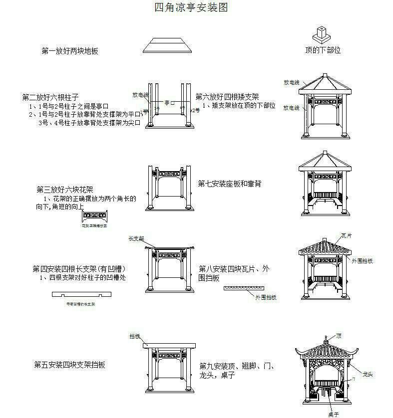 【關(guān)于安裝】:每一套涼亭都配有安裝圖紙,所有的部件均有編號(hào),親們細(xì)心查看,按圖紙?zhí)崾疽徊讲讲僮鳌H缧枭祥T安裝費(fèi)用另計(jì)算,具體聯(lián)系客服。