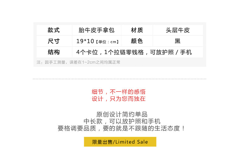 免責聲明:當前頁為 日韓原創頭層牛皮長款錢包男青年手抓包簡約**拉鏈**手拿包潮產品信息展示頁,該頁所展示的 日韓原創頭層牛皮長款錢包男青年手抓包簡約**拉鏈**手拿包潮產品信息及價格等相關信息均有企業自行發布與提供, 日韓原創頭層牛皮長款錢包男青年手抓包簡約**拉鏈**手拿包潮產品真實性、準確性、合法性由店鋪所有企業完全負責。世界工廠網對此不承擔任何保證責任,亦不涉及用戶間因交易而產生的法律關系及法律糾紛,糾紛由會員自行協商解決。