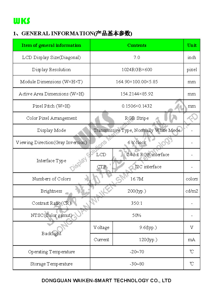 ? ? ? ? ? ? ? ? ? ? ? ? ? ?7寸高清電容觸摸屏1024x600分辨率RGB接口LCDI2C電容觸摸液晶顯示屏