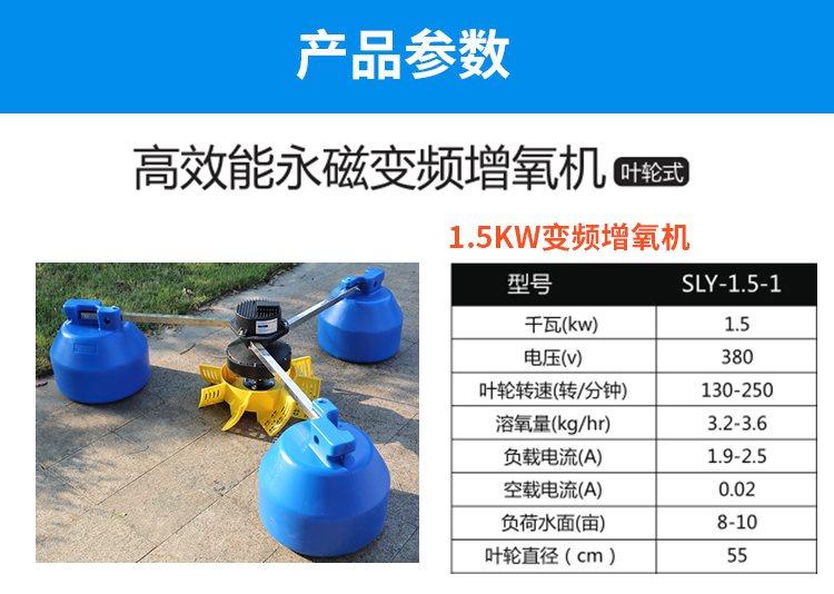 變頻增氧機不是神機,它不能包打天下,但它和傳統的增氧機比較,確實做到了傳統做不到的地方:**,1.5千瓦的變頻增氧機可以達到傳統3.0千瓦的功率;第二,他沒有變速箱,沒有齒輪,所以沒有齒輪維護,也就沒有所謂的添加齒輪油的事,免維護且無噪音;第三,他的電機從理論上講是不應該有故障的。