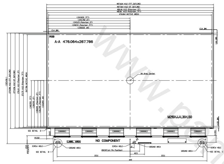 | 驅屏電壓 | 5.0V | 顯示區域 | 476.064*267.786 mm |