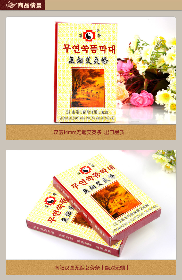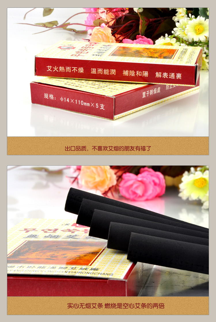 品名:漢醫無煙艾灸條 規格:Ф14mm* 110mm*5支,一箱200盒