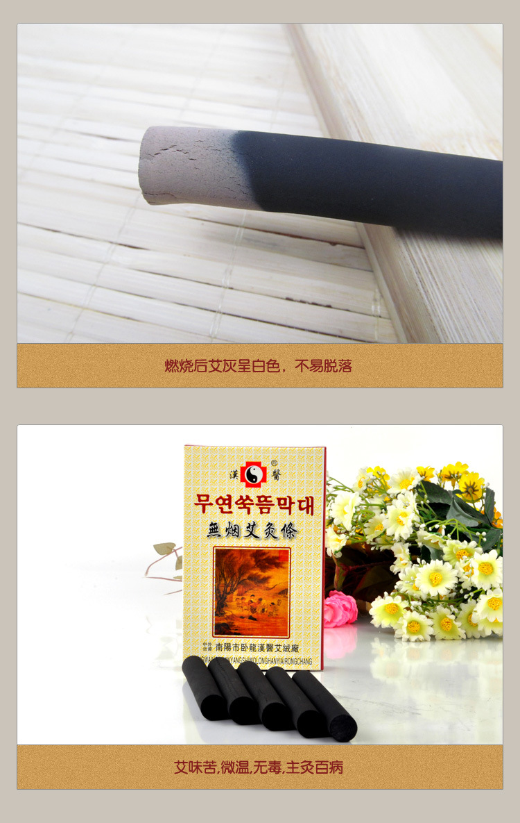無煙灸條是在傳統灸條的基礎上,采用現代科學技術,經過多年實驗研究改進而成.既保持了傳統灸條療效,又具有灸力強勁無煙,耐燃,氣味芳香,不污染環境的特點.