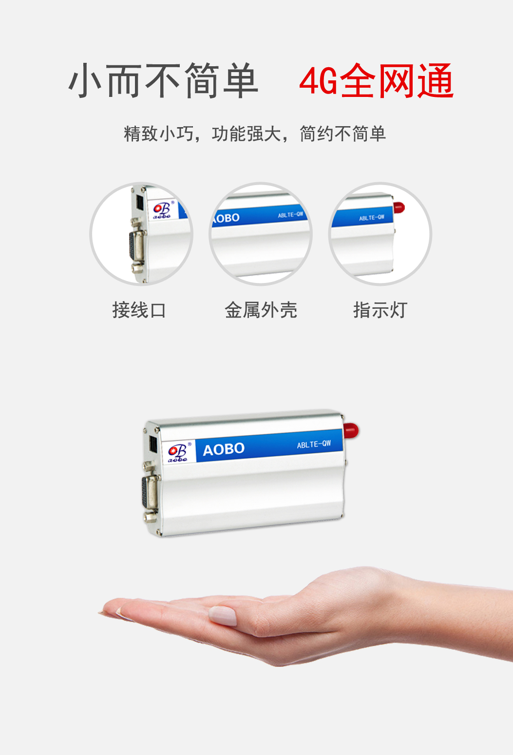 ? ? ? ?濰坊奧博儀表自主研發的全網通模塊ABLTE-QW采用國際**技術生產的核心模塊,實現**穩定在線,將數據通過模塊無線網絡、Internet網遠傳至監控中心,可以直接通過各類工業組態軟件與遠端現場傳感器進行數據交流。