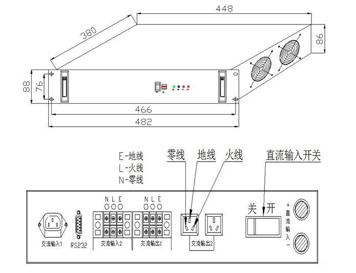 機械尺寸: 機架式: 寬×高×深(mm) 482×88×380