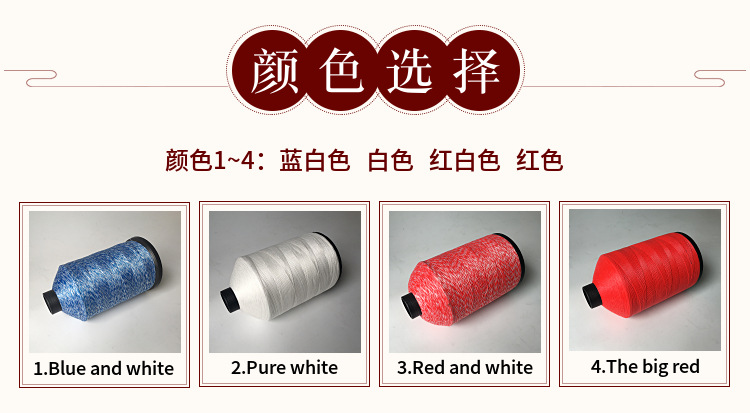 ? ? ? ? ? 蠟線的規格有:3200D、1600D、1200D、800D等? ? ?? ?護弦線的規格有:400D/3、200D/3? ? ? ? ? ? ? ? ? ? ? ? ? ? ? ? ? ? ? ? ? ?顏色有:紅色、黑色、白色、藍色、綠色、米色、咖啡色、紅白間色、紅白間色等?