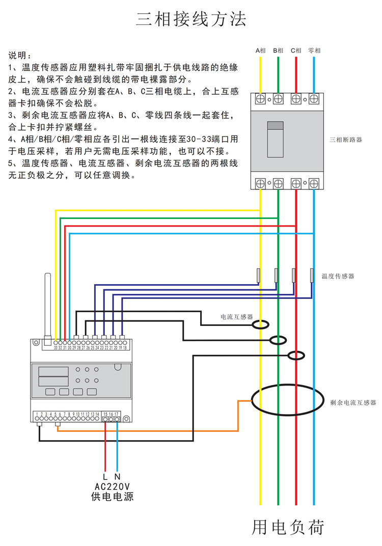 | 三相250A | 1個智慧安全用電模塊+1個【RYCTK-65】漏電互感器+3個【RCTKD-24】電流互感器+4個【RT1】溫度探頭 |