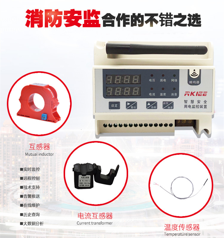本產(chǎn)品主要用于監(jiān)控被保護(hù)配電回路的漏電、線路溫度、箱體溫度、電流及電壓等參數(shù); 產(chǎn)品內(nèi)置GPRS/NB-IOT消防物聯(lián)無線通訊模塊,體積尺寸設(shè)計合理,采用標(biāo)準(zhǔn)導(dǎo)軌安裝方式, 可方便的安裝于配電箱內(nèi),有效監(jiān)測由于電氣線路或設(shè)備故障、絕緣層老化破損、空氣潮濕、 電氣連接松動等原因造成的線路溫度超限、漏電或過載等電氣安全隱患。 |