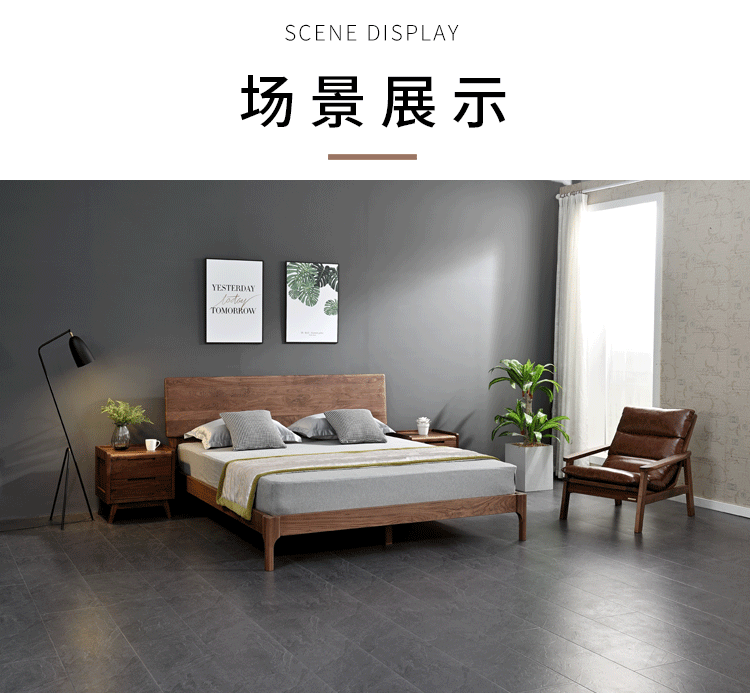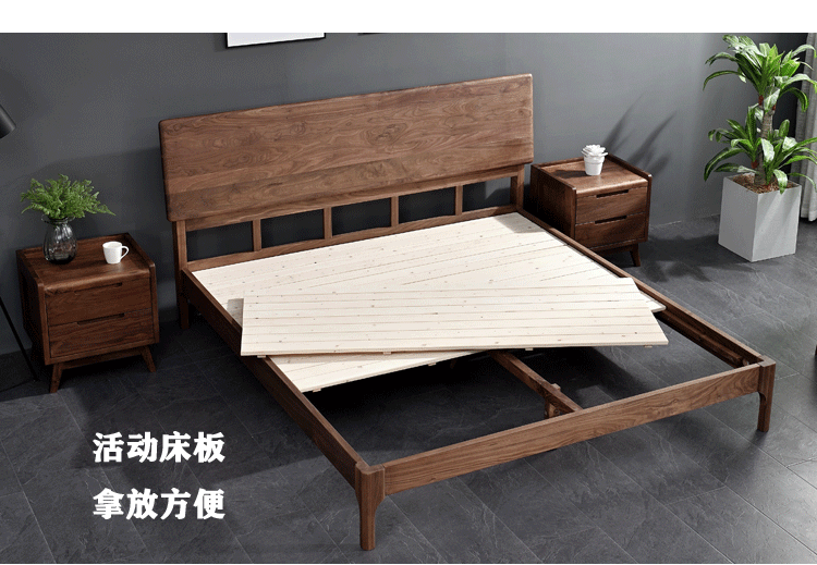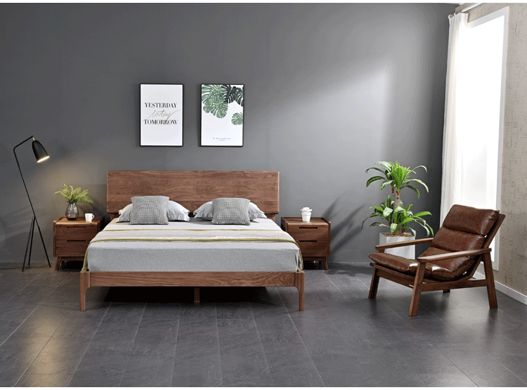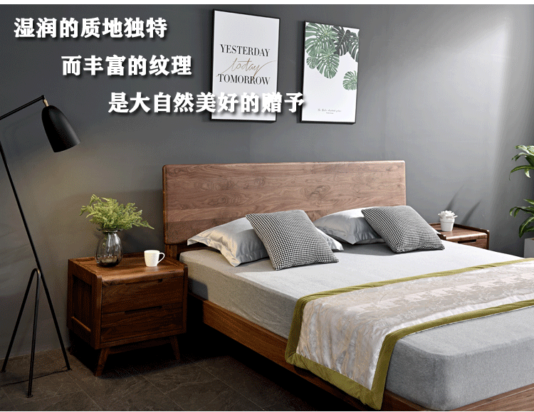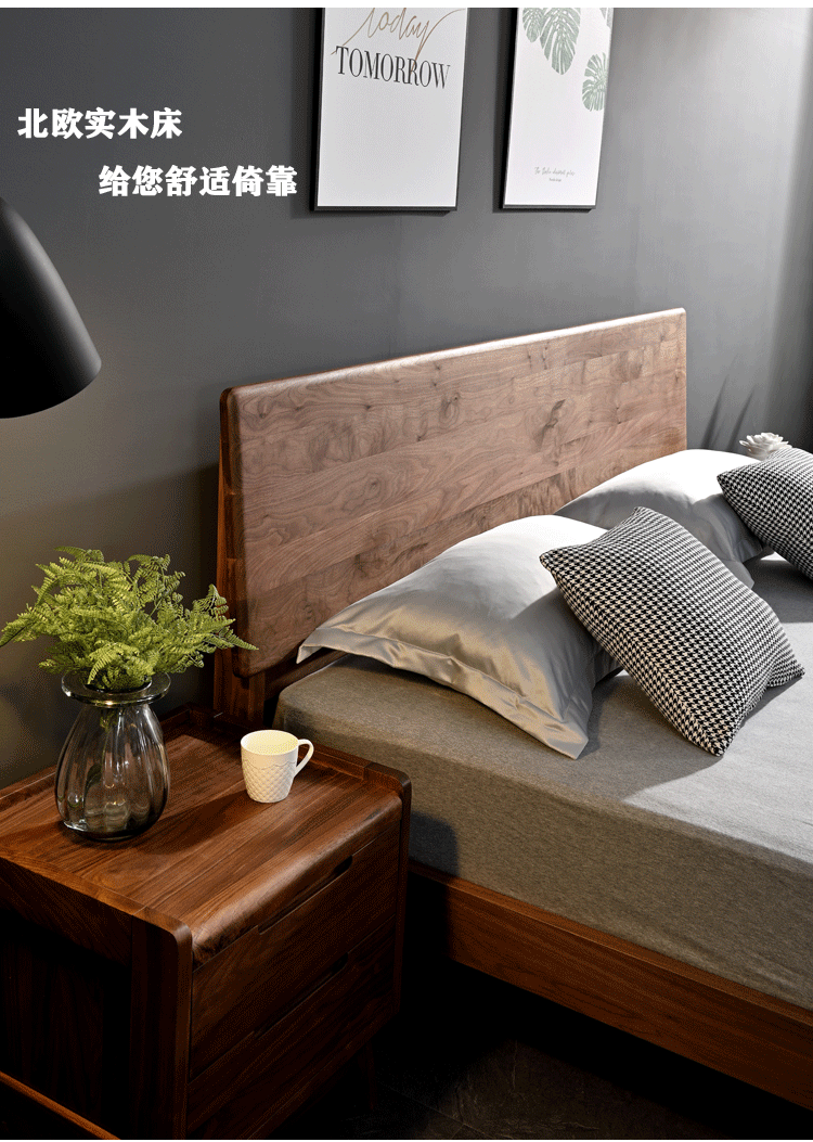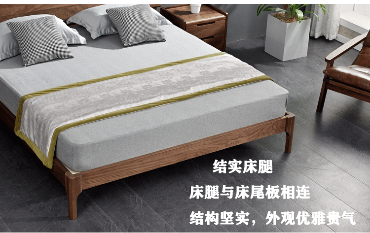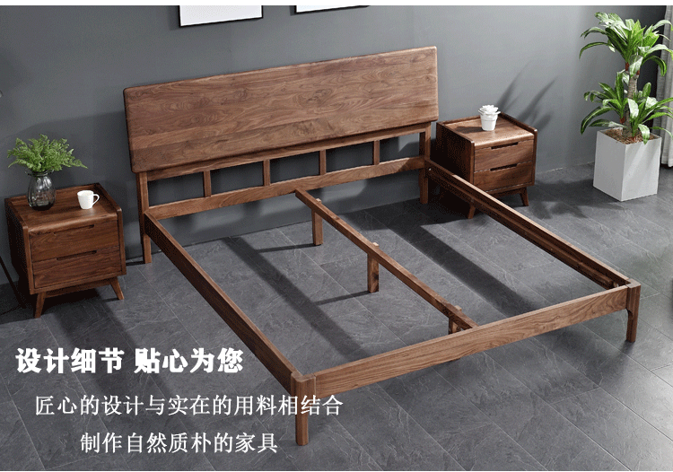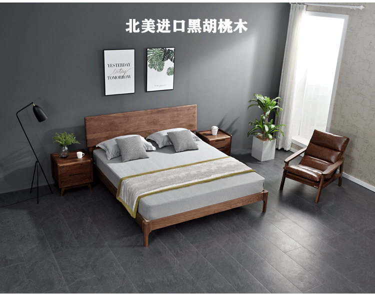 北歐床黑胡桃木實(shí)木床現(xiàn)代簡(jiǎn)約主臥雙