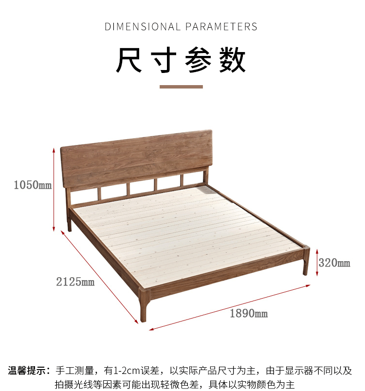 北美黑胡桃全實(shí)木雙人床,木蠟油工藝,全拼板,床板松木板。