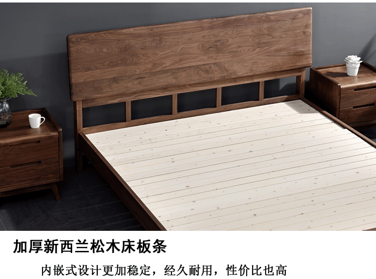 北美黑胡桃木床主臥1.8米床現(xiàn)代簡(jiǎn)約