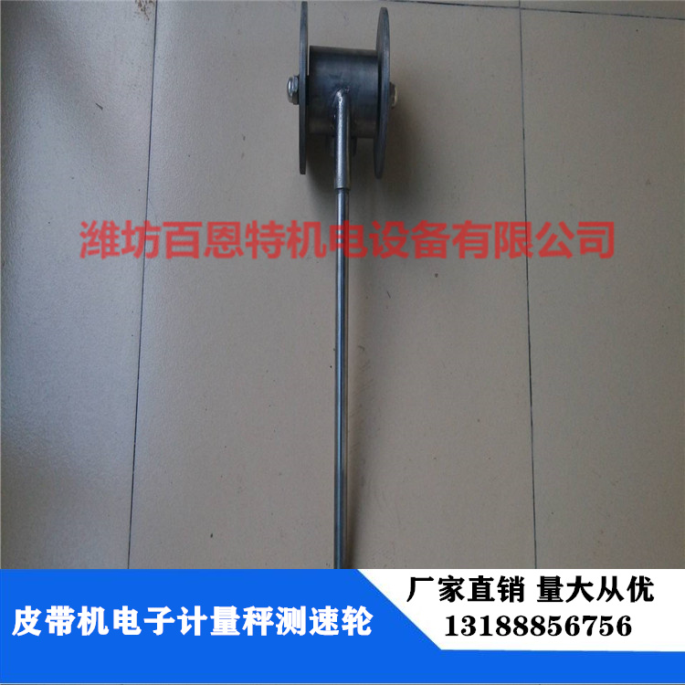 主要用于大皮帶的測速,純金屬制造,重達4.8KG,安裝時一般安裝在大皮帶托輥的下方皮帶中間位置,靠自身的壓力,測速輪緊緊的抓牢大皮帶,帶動----輪轉,精度高,而且可以精確測出皮帶打滑,使用壽命長。是大皮帶理想的測速工具。