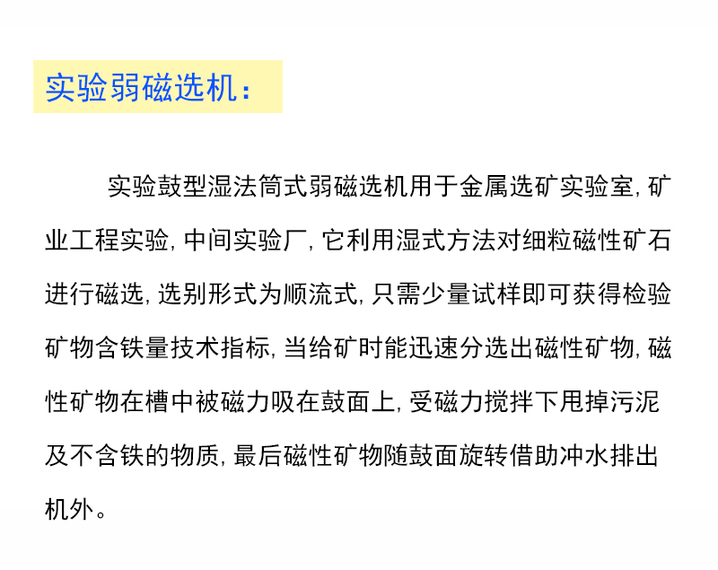 免責聲明:當前頁為 實驗室濕式弱磁選機 電磁鼓形磁選機弱磁性礦物 滾筒式弱磁選機產品信息展示頁,該頁所展示的 實驗室濕式弱磁選機 電磁鼓形磁選機弱磁性礦物 滾筒式弱磁選機產品信息及價格等相關信息均有企業自行發布與提供, 實驗室濕式弱磁選機 電磁鼓形磁選機弱磁性礦物 滾筒式弱磁選機產品真實性、準確性、合法性由店鋪所有企業完全負責。世界工廠網對此不承擔任何保證責任,亦不涉及用戶間因交易而產生的法律關系及法律糾紛,糾紛由會員自行協商解決。