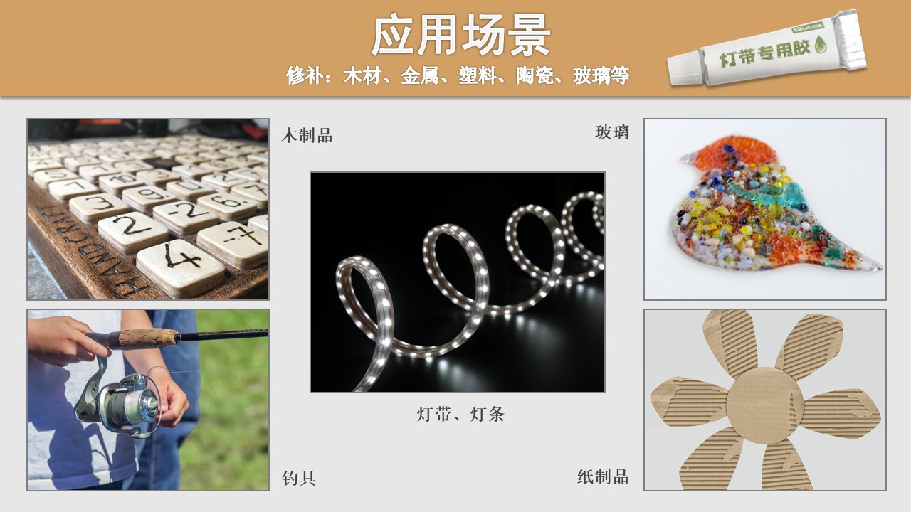 | 產品用途: | 粘合LED燈帶、釣具、金屬及電鍍原件、木質工藝品與密度板等多孔性材料 |