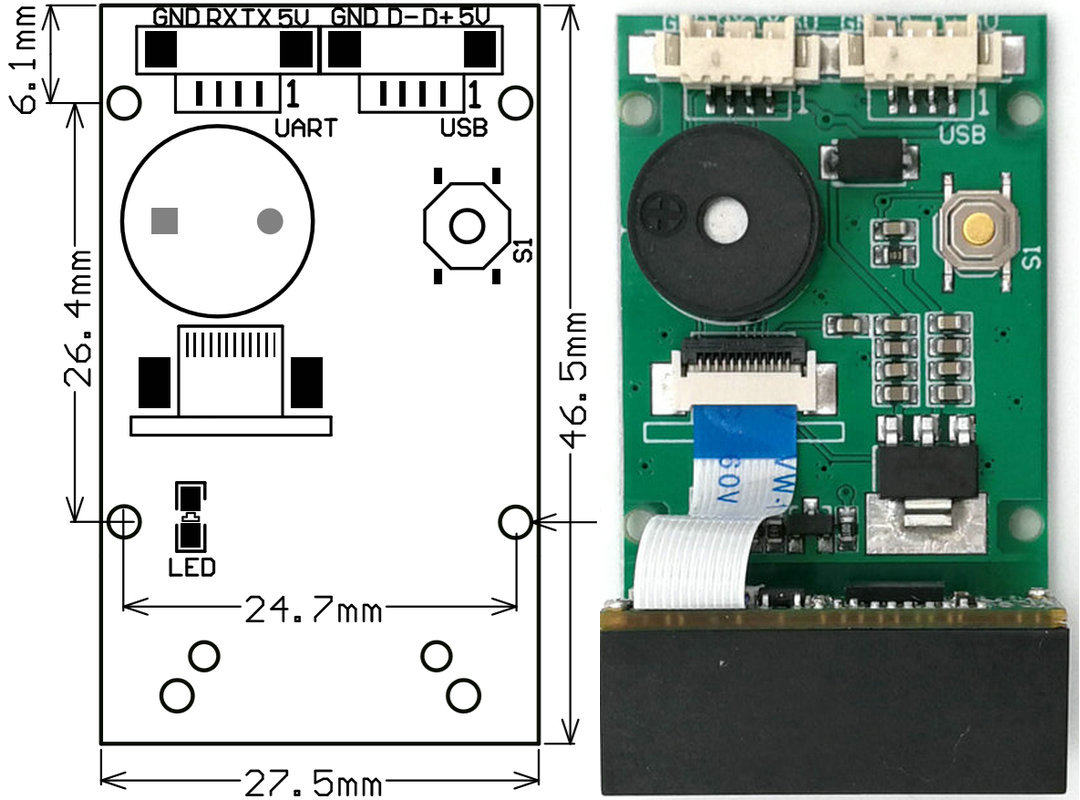 單片機通過UART接口直接接收,輸出是ASCII碼 ,通過掃描手冊里的二維碼,設(shè)置串口輸出,默認是USB 輸出。