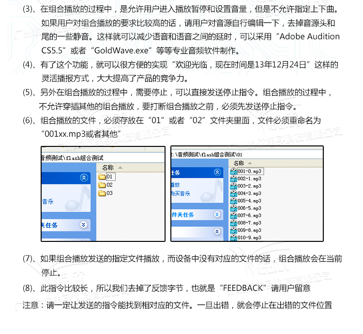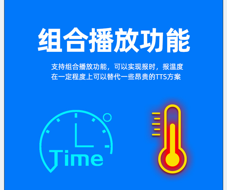 6、支持組合播放功能,可以實現報時、報溫度,在一定程度上可以替代一些昂貴的 TTS 方案
