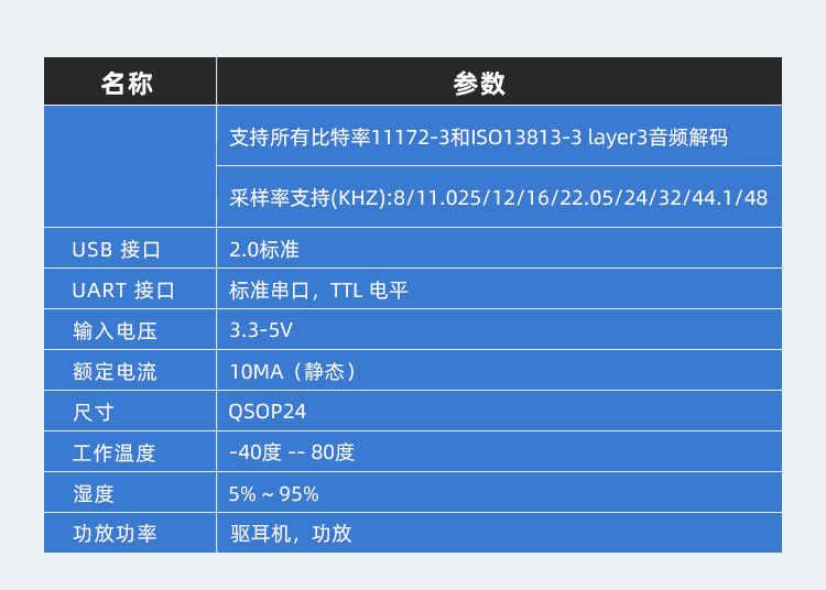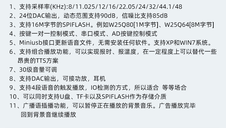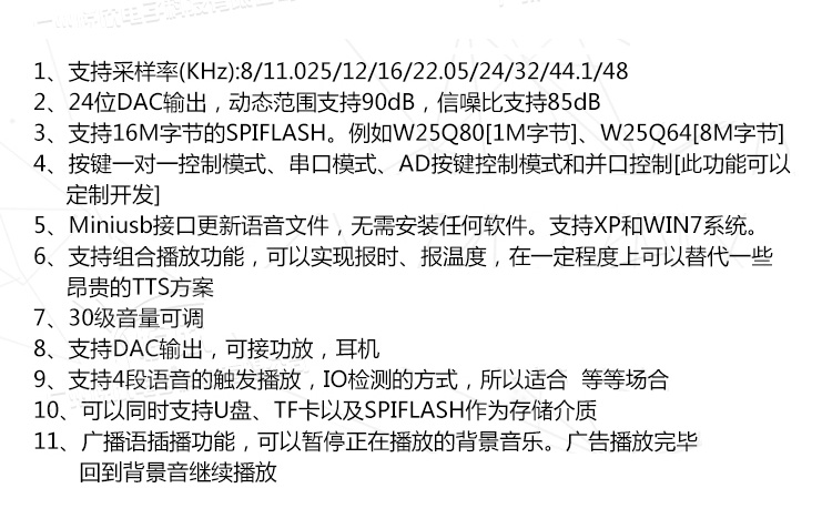 1、支持采樣率(KHz):8/11.025/12/16/22.05/24/32/44.1/48