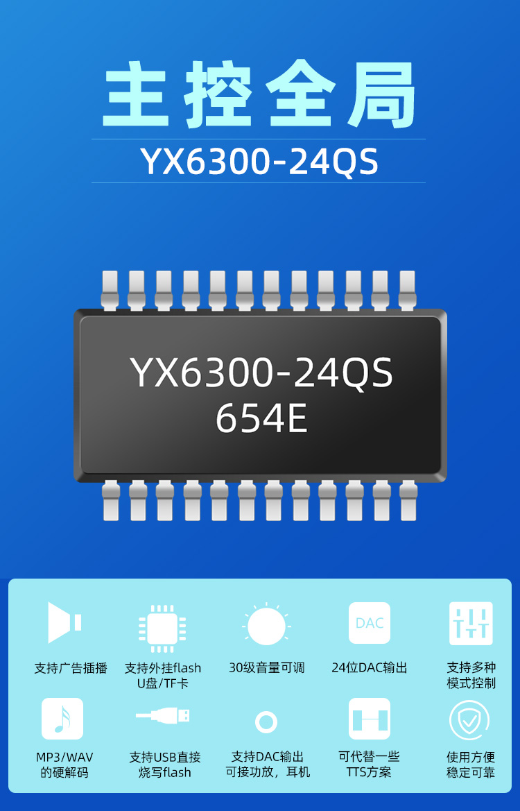 免責聲明:當前頁為 YX6300-24QS語音MP3主控芯片方案工業串口TTL9600波特率產品信息展示頁,該頁所展示的 YX6300-24QS語音MP3主控芯片方案工業串口TTL9600波特率產品信息及價格等相關信息均有企業自行發布與提供, YX6300-24QS語音MP3主控芯片方案工業串口TTL9600波特率產品真實性、準確性、合法性由店鋪所有企業完全負責。世界工廠網對此不承擔任何保證責任,亦不涉及用戶間因交易而產生的法律關系及法律糾紛,糾紛由會員自行協商解決。