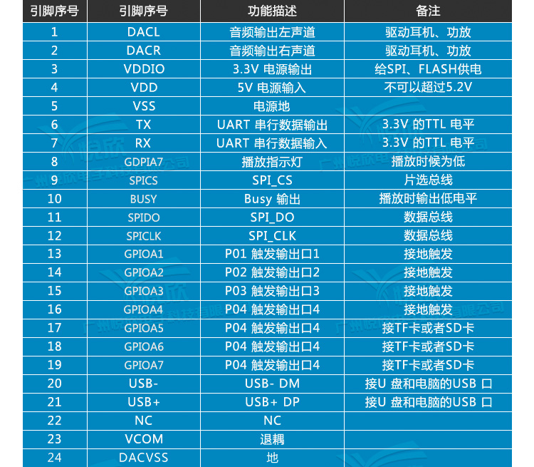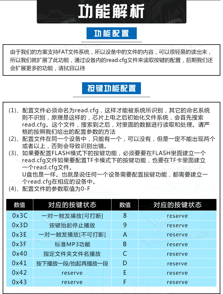 8、支持4 段語音的觸發播放,IO 檢測的方式,所以適合碳膜按鍵等等場合