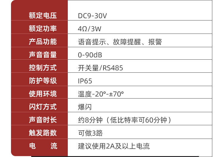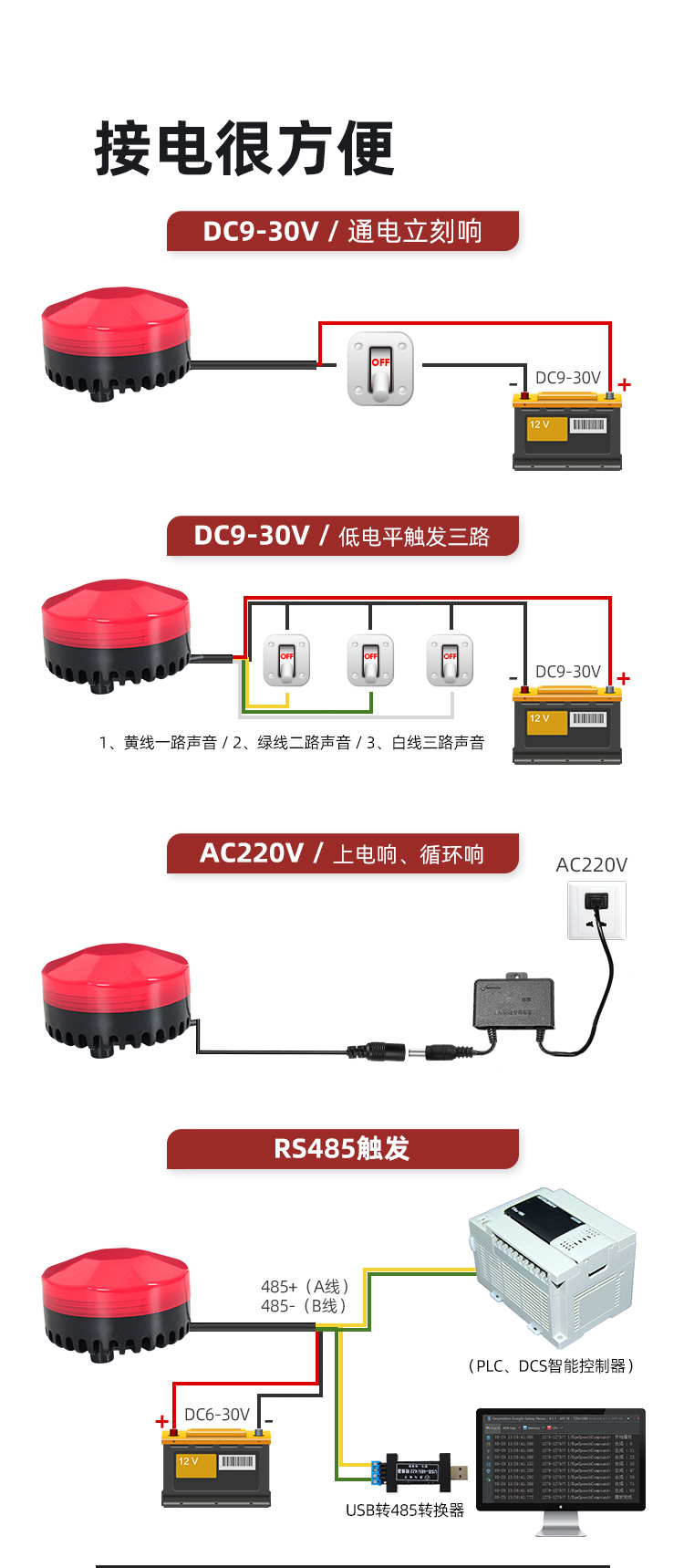 YX75R是本公司推出的小型聲光報警器,采用高亮LED發光源,防水高頻喇叭,內嵌高穩定性的MP3主控,具有良好操作性,是一款可USB更換報警內容的聲光報警器。報警器可通過開關信號控制,或RS485/USB-TTL串口控制,可用于家庭、工廠、學校、商鋪、便利店、財務室、別墅、小區等報警控制系統、安防監控報警系統及其他報警系統中,保障人身及財產的安全。