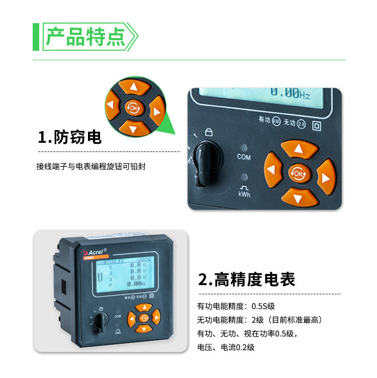 嵌入式安裝電能計量裝置是針對電力系統(tǒng)、工礦企業(yè)、公用設(shè)施的電能統(tǒng)計、管理需求而設(shè)計的一款智能儀表,集成了全部電力參數(shù)測量及全面的電能計量及考核管理,提供上24時、上31日以及上12月的各類電能數(shù)據(jù)統(tǒng)計。帶有開關(guān)量輸入和繼電器輸出可實現(xiàn)“遙信”和“遙控”功能,并具備報警輸出。帶有RS485通信接口,采用MODBUS-RTU協(xié)議,可廣泛應(yīng)用于各種控制系統(tǒng),SCADA系統(tǒng)和能源管理系統(tǒng)中。