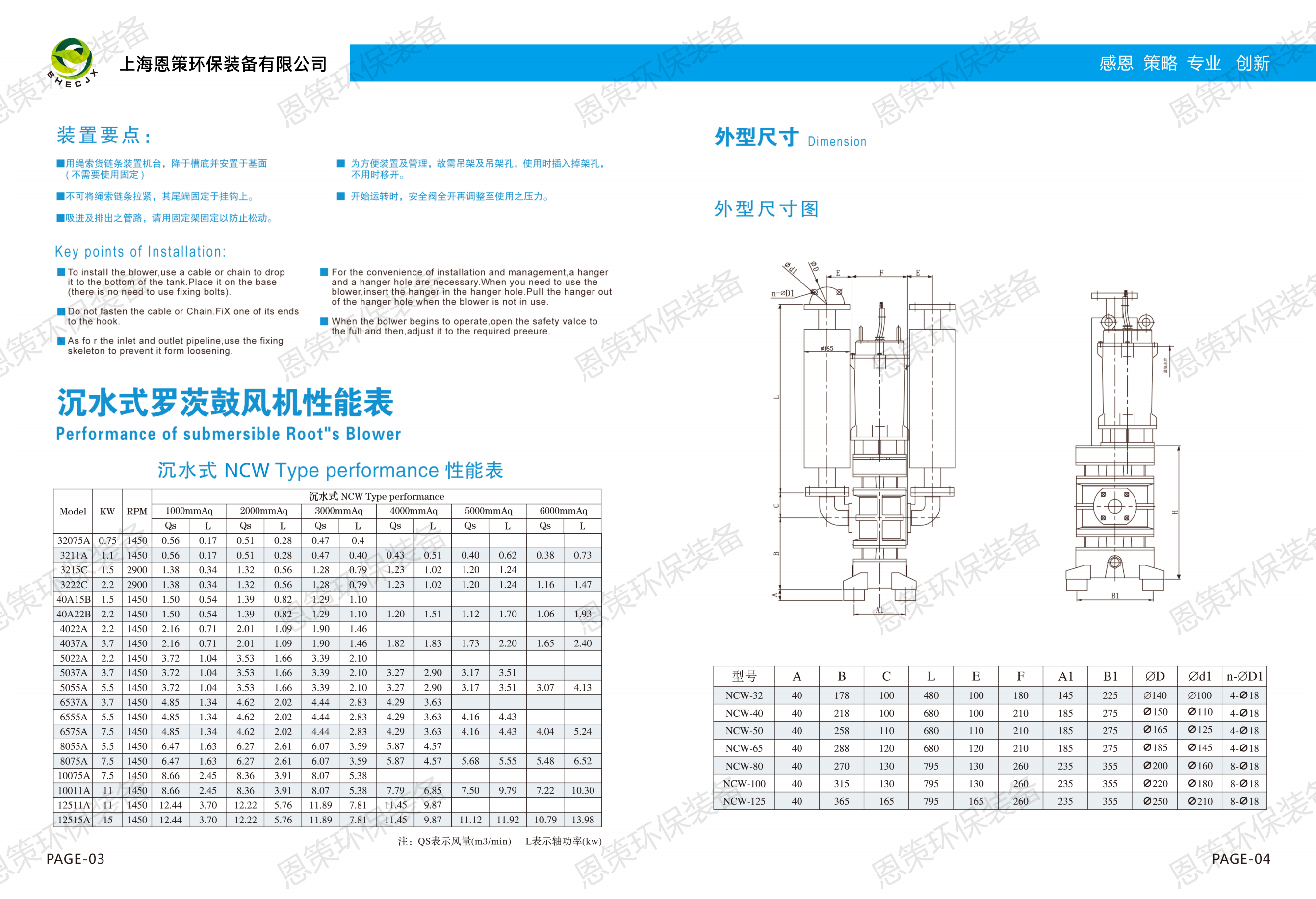 NCW沉水羅演風機是上海恩策環保裝備有限公司自主研發設計生產的一款高性能低曝音的適合當下環保要求的風機。風機優點: