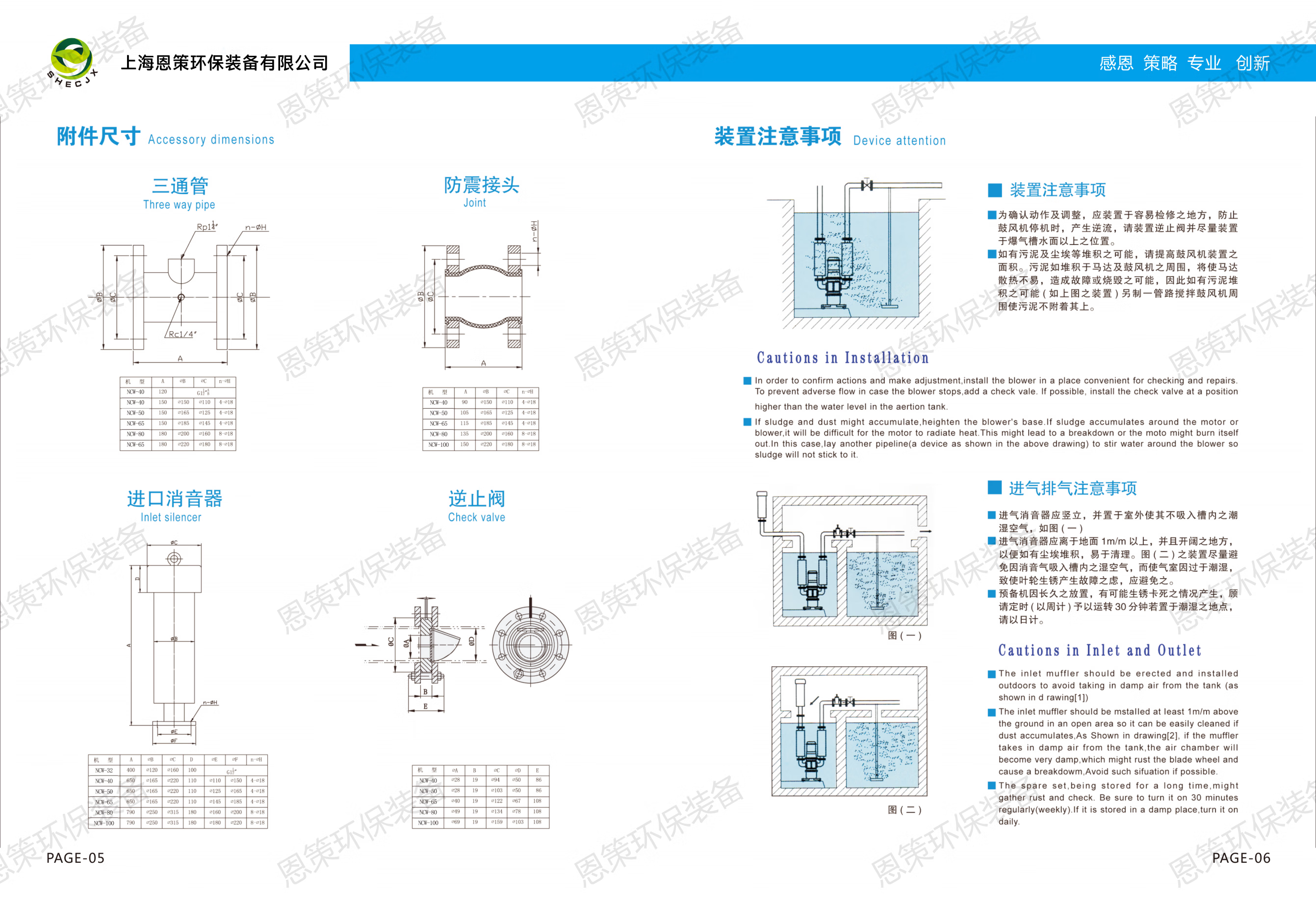 6、安裝入口消聲器及彎頭。