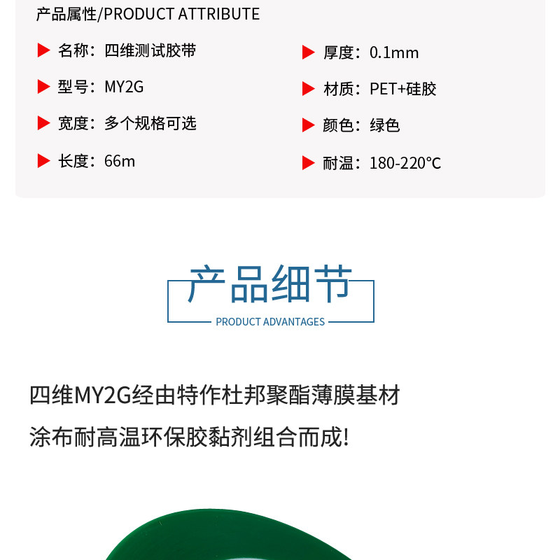 MY2G四維鹿頭牌測試膠帶 耐酸堿綠色高溫膠 電鍍遮蔽高溫膠0.1mm