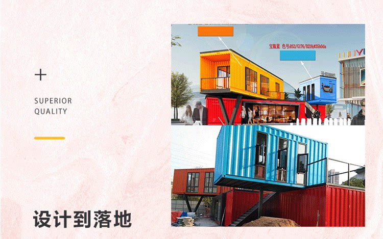 集裝箱方案設計·定制·加工·生產·安裝感謝您的瀏覽,想必您也逛了幾家店鋪,各種造型設計的集裝箱改造功能房、(新能源動力集裝箱方艙、混合儲能、集裝箱酒店、展示中心、方艙醫院、集裝箱泳池、住人集裝箱、集裝箱商業街、集裝箱咖啡吧、集裝箱售樓部)您也眼花繚亂了吧。如果您咨詢過商家,他們都會告訴您是生產廠家。即使從事集裝箱行業這么多年,我也分不清,怎么辦呢?我們可以看詳情頁中有沒有這款產品的介紹,例如設計方案圖,生產加工圖,安裝圖或者對比產品主圖來看是不是同一款產品案例。以上都沒有,可能就……說了這么多只是希望您能快速找到心儀的集裝箱產品,節約您的時間! 我司承諾以下服務: ·原創集裝箱設計(設計方案,效果圖,施工圖,基礎圖等); ·實體工廠(期待您蒞臨工廠指導); ·保證集裝箱生產制造或改造的質量,并進行現場安裝; ·即時匯報集裝箱生產實況,方便您把控整體流程; ·全程無憂施工維護。 ·友情提醒,由于本店商品都是定制服務,線上下單需要提前與客服溝通。