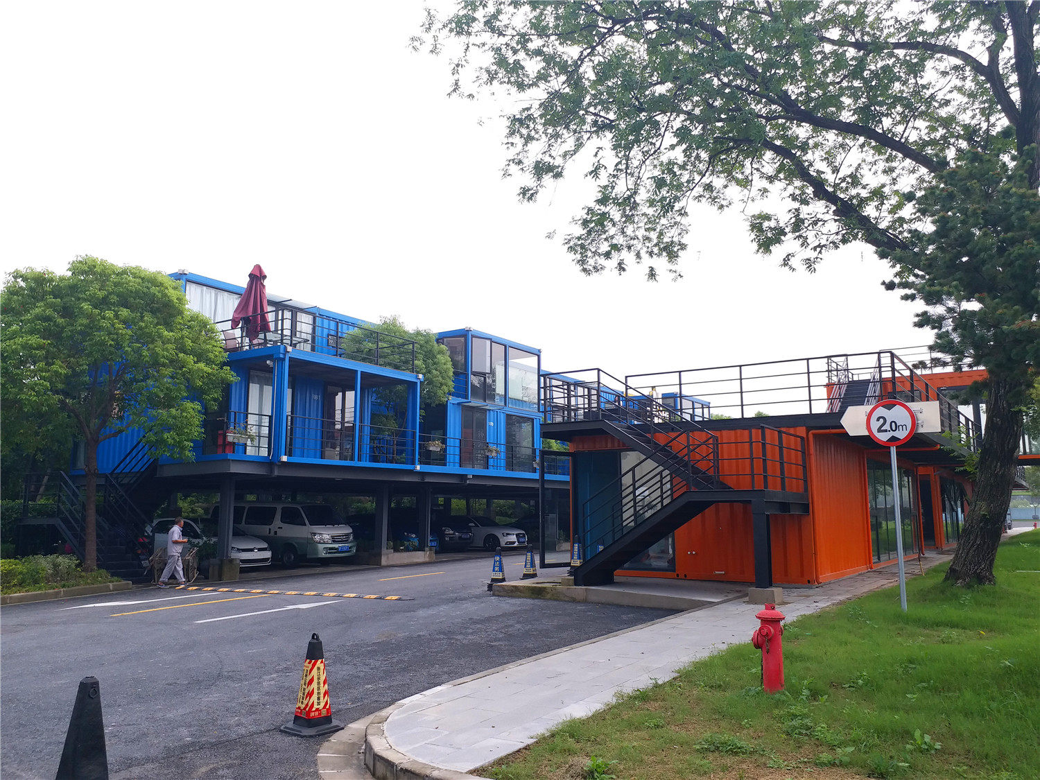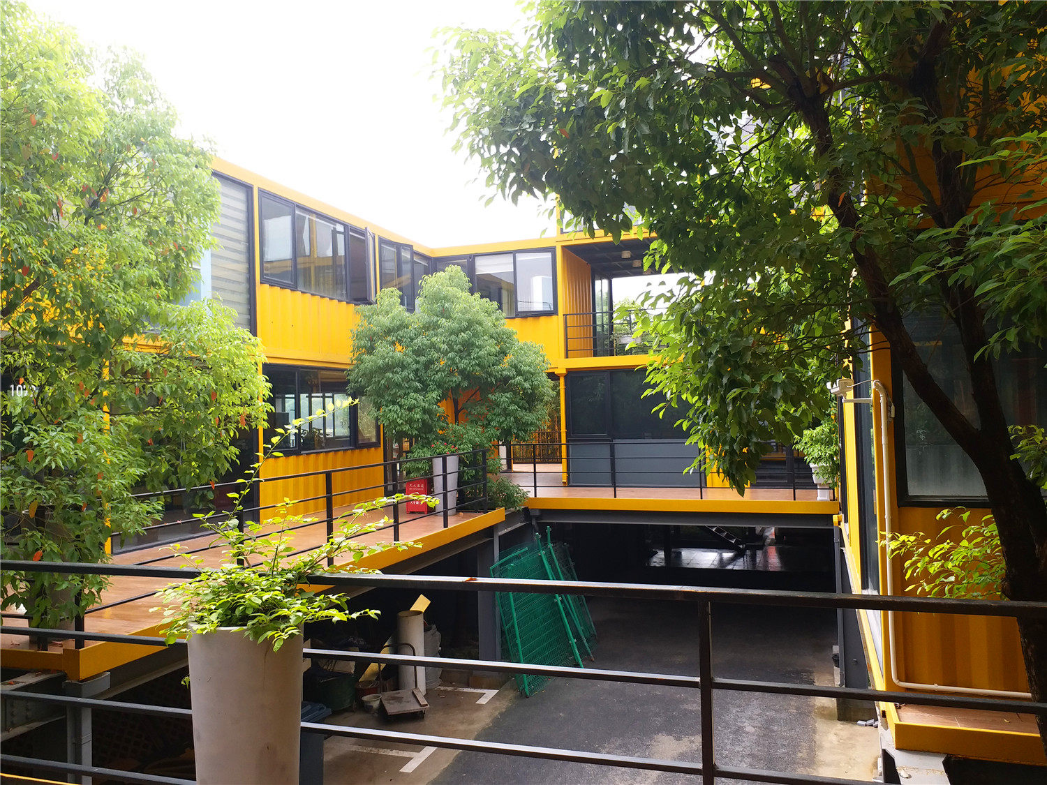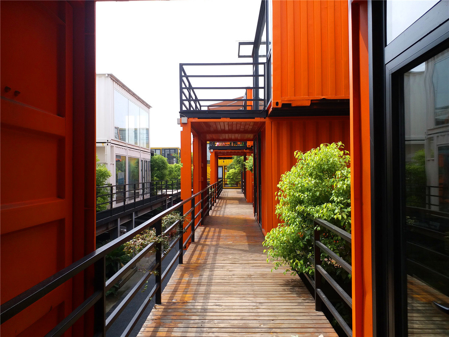集裝箱辦公區分為四類色塊功能建筑,分別是黃色、橙色、綠色、藍色集裝箱,這些色塊連成一片,在整個智慧園區脫穎而出,成為一道亮麗的風景線。