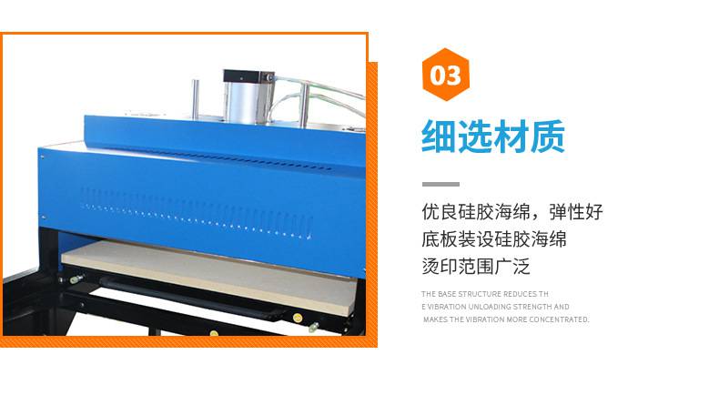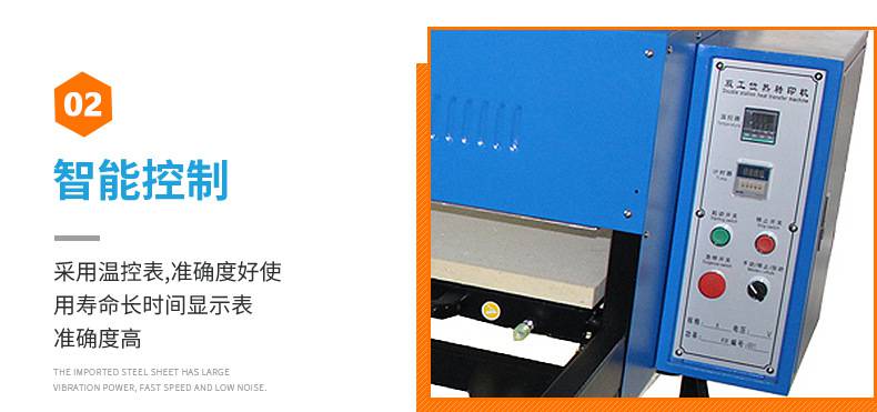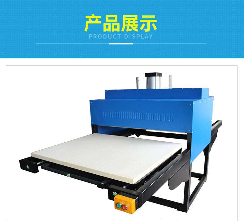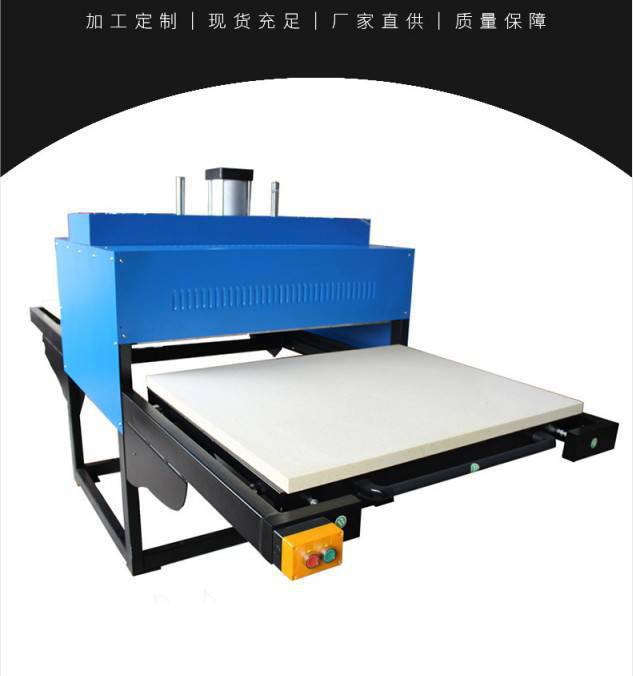 自動升華轉印機 承印面積:100×120 cm 電壓 110V 220V 380V 三相四線 功 率:9kw 溫度范圍 :0-399℃ 時間范圍:0-999S 氣缸行程:125cm 工作壓力:8kg 重 量 :820KG 包裝尺寸: 100×160×170cm 我們的印花設備廣泛用于紡織布料制品,陶瓷制品,金屬制品的熱轉印印花或熱處理.適用于燙印服裝、手袋、雨傘、鞋、帽、工藝品、禮品、廣告用品等。可將發泡燙畫、滲透燙畫、幻彩燙畫、升華燙畫、植絨燙畫、燙金燙畫、泳裝燙畫、電子科技影像燙畫、燙鉆、燙珠、燙膠等轉印到自己所需要燙印物品上。 技術參數:本機電器控制采用******技術、進口元件、自動限位、準確、安全、可靠性高、使用壽命長; 電子數字恒溫控制,準確性高(±1-2℃); 時間電子控制,準確性高; 油加溫發熱板采用***技術,液體循環導熱發熱均勻;熱導性強。 產品特點: 燙畫機采用氣動式,省力,省時,操作簡便。 全數顯時間控制器,能準確地調節器至所需用時間,全電子 溫度控制器,溫度誤差:“±2℃”。 設備整體結構穩固,不易變形,運行平穩,噪聲小。 全自動控制,壓力平穩均勻,壓力可達8KG/CM。 工作臺可在手勸與自動運行之間切換。 采用雙面推拉式作作臺,操作省力,承印速度快。 加熱板采用鋁全金與發熱管澆鑄為一體,加熱裝置加熱速度 快,20分鐘可達200℃,溫度均勻,保溫,省電。轉印面積大,可承接大型號廣告牌及片裝印畫。
