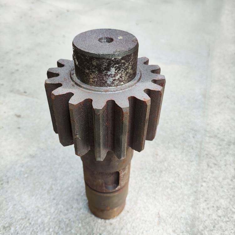 JZM1000/1500型滾筒式混凝土攪拌機配套11/15KW攪拌用電機的減速機變速箱里面的16齒直齒傳動軸齒輪。直齒,16齒軸,軸長約245mm,兩頭軸承位直徑55mm,中間鍵槽處直徑60mm,鍵槽寬度18mm。