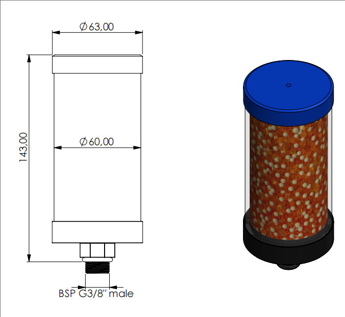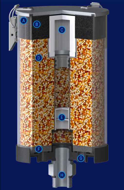 塑料外殼 (A): 保護吸附器的內部結構。可重新填充的塑料外殼經久耐用,抗紫外線。