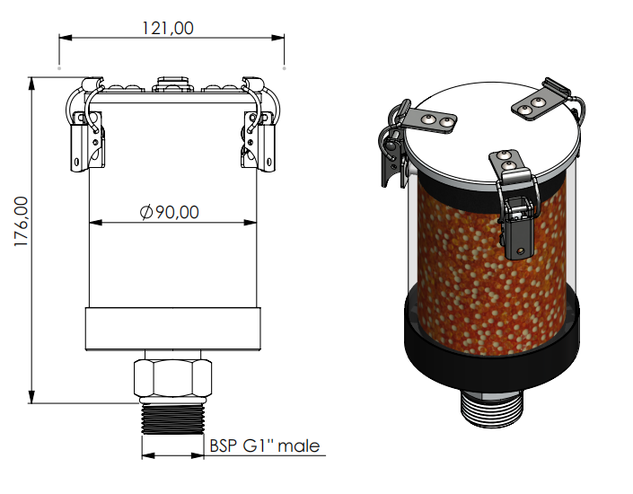 塑料外殼 (A): 保護吸附器的內部結構。可重新填充的塑料外殼經久耐用,抗紫外線。