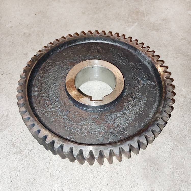 混凝土750型攪拌機(jī)減速機(jī)56齒牙斜齒輪,配套7.5KW錐形轉(zhuǎn)子提升電機(jī)機(jī)變速箱的齒輪和齒軸,淬火結(jié)實(shí)耐磨。斜齒,56齒,直徑175mm,軸孔45mm,鍵槽14mm,齒厚25mm。另外有與之配套的20/21齒電機(jī)軸輪,51/50齒盤(pán)齒輪,17/18齒軸等。