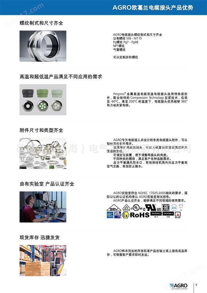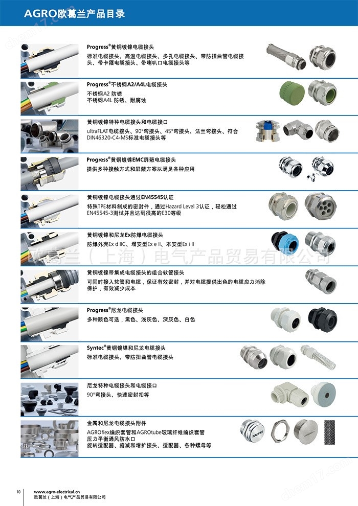 瑞士AGRO,產(chǎn)品實用與性能兼具,始終確保真正、成熟的創(chuàng)新。歐葛蘭(上海)電氣產(chǎn)品貿(mào)易有限公司是瑞士AGRO全資子公司,同時是德國電纜保護軟管,軟管接頭FLEXA在地區(qū)代理商。AGRO電纜接頭在市場得到了廣大客戶的普遍認(rèn)可,歐葛蘭攜手FLEXA為廣大客戶提供技術(shù)支持和銷售服務(wù)。Synte系列Lamellar Technology層狀技術(shù),夾緊范圍大,支持直徑為1mm的超小電纜使用!