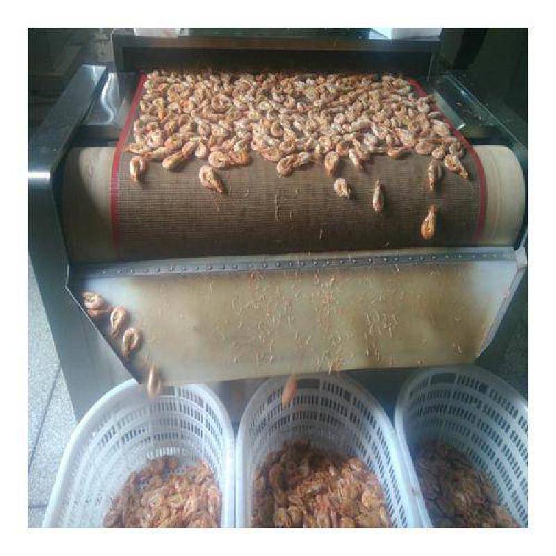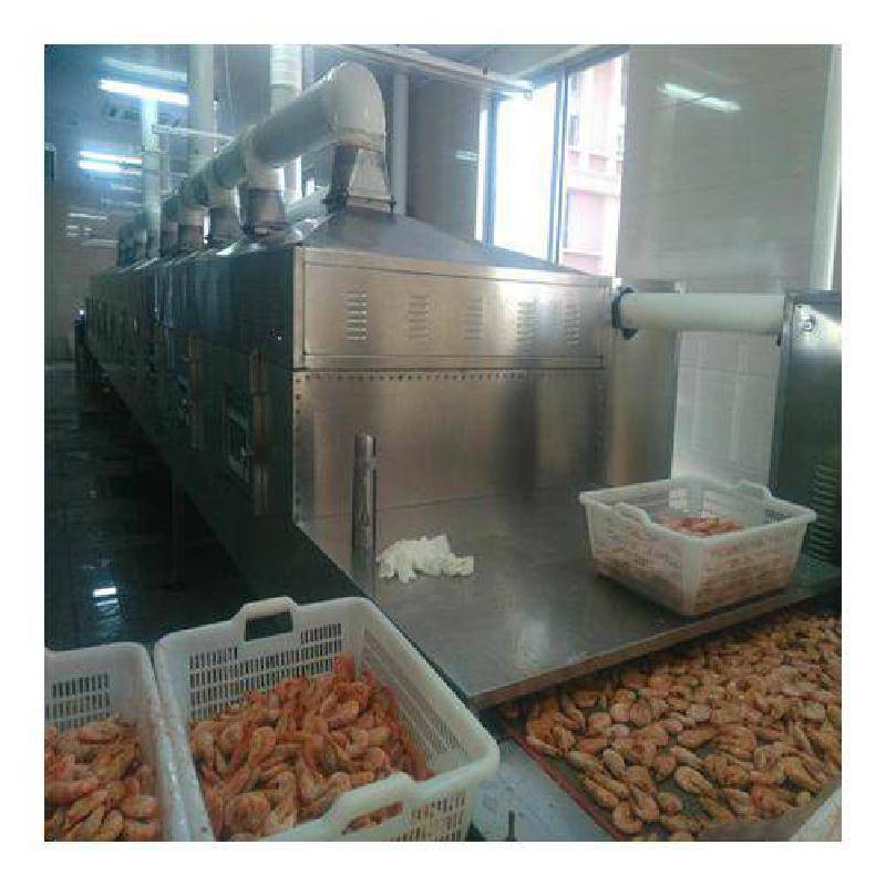 (2) 采用微波烤蝦設備流水線生產,生產速度快,烘烤時間短。
