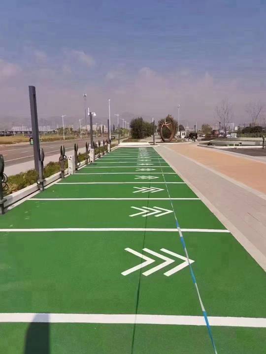 2. 劃線材料與標準 材料選擇 熱熔標線:耐磨反光,適合室外長期使用(推薦主干道)。 冷漆標線:成本低,施工快,適合臨時或室內(nèi)停車場。 環(huán)氧樹脂:地下車庫常用,防滑耐壓。 顏色規(guī)范 白色:普通車位; 黃色:專用車位(如卸貨區(qū)、消防通道); 藍色:無障礙車位(需搭配國際無障礙符號)。